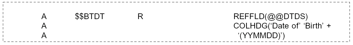 When the field is of a standard type, for example, already defined as a primary field, the field should be defined by reference to its primary field—that is to say using REFFLD(*SRC). In such cases, only the column headings need to be redefined.