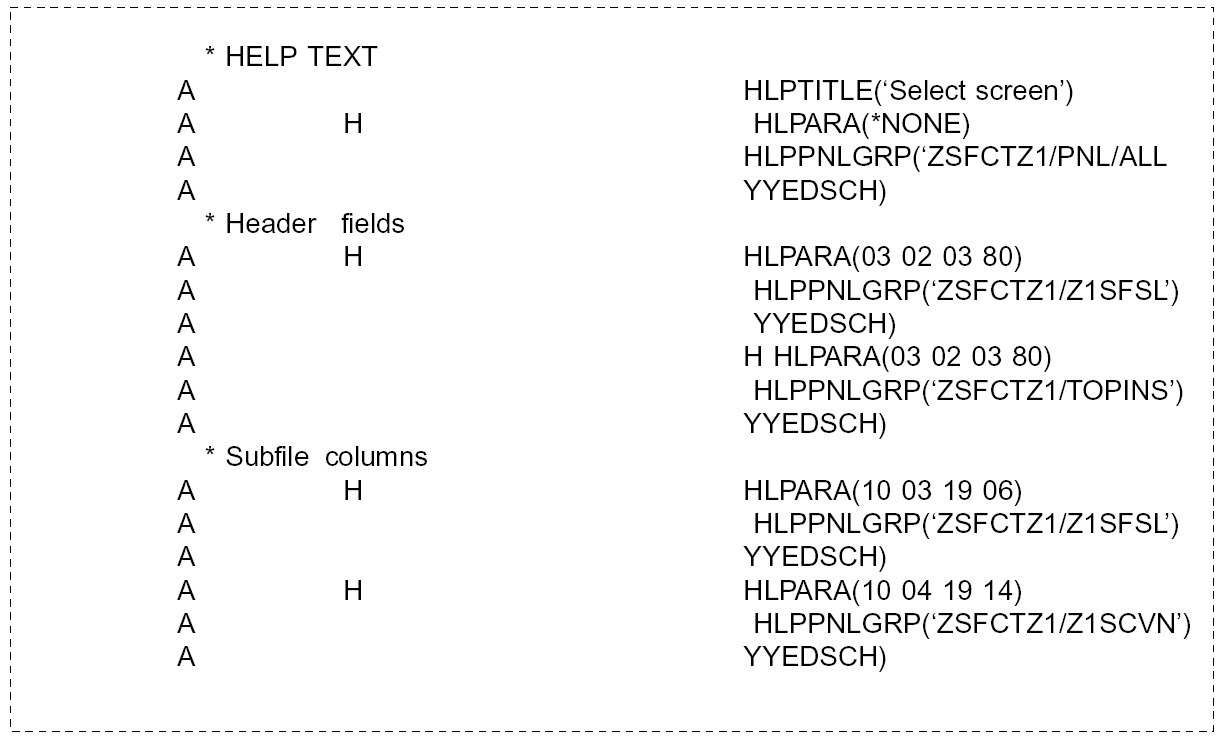 The following standards apply to coding Display file DDS help specifications at a format level: