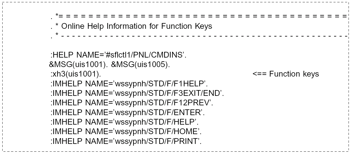Provide explanations of the function keys. This should have the form ‘format/PNL/CMDINS’. In most cases, you will be able to reuse standard definitions.