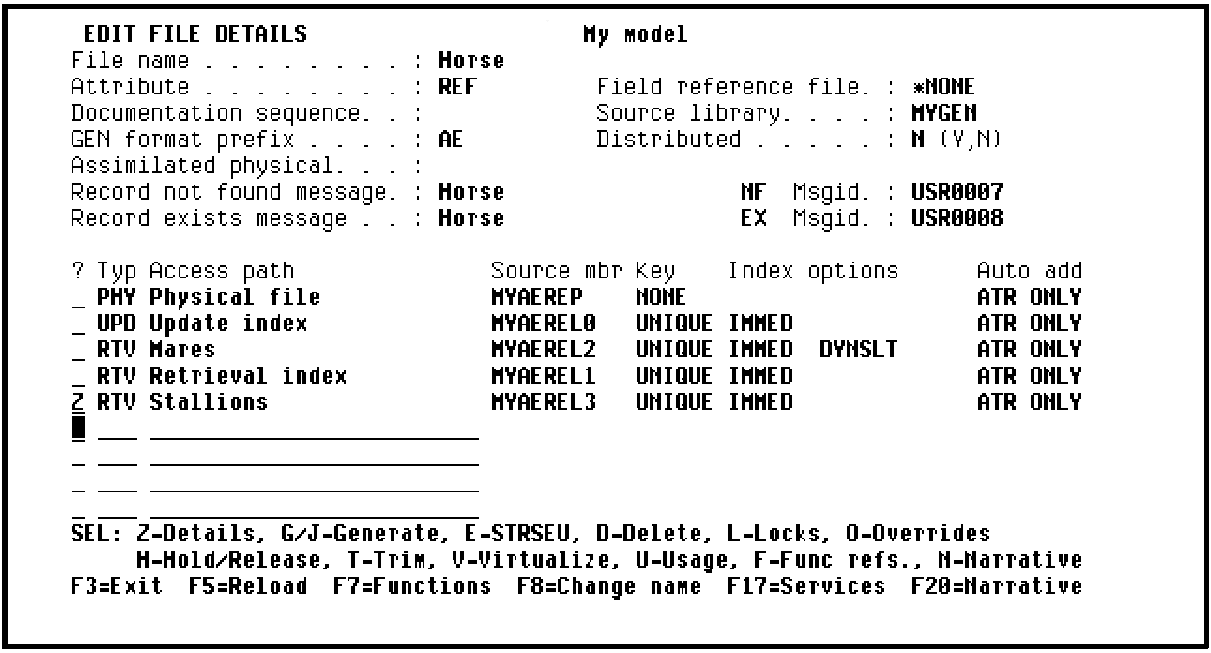You can now specify a selection access path for Stallions by repeating the process you just used to specify a selection access path for Mares. Type Z against the Stallions access path.