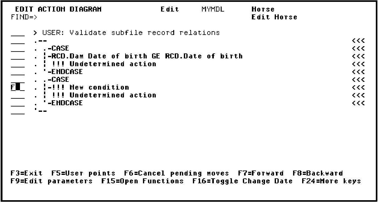 Notice that the test for the condition has been updated. You are now ready to edit the second condition. To edit the second condition, type F against !!! New condition.