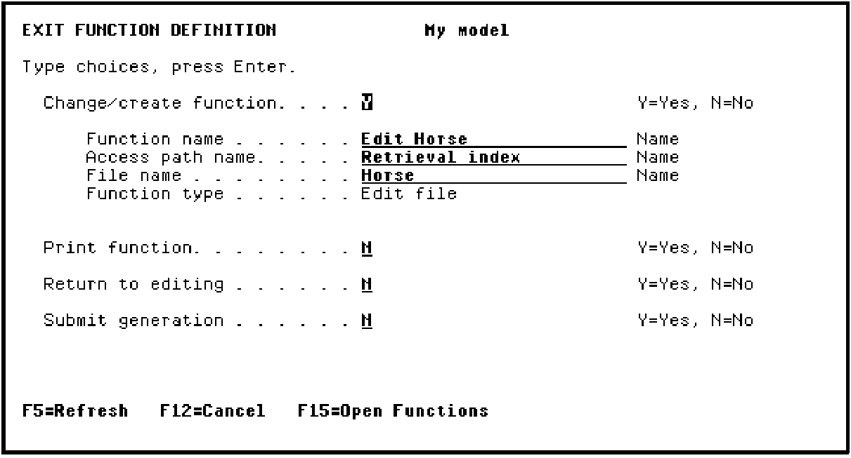 Press F13 to Exit the Action Diagram Editor and display the Exit Function Definition panel. Accept the defaults on this panel to save all changes you made to the action diagram.