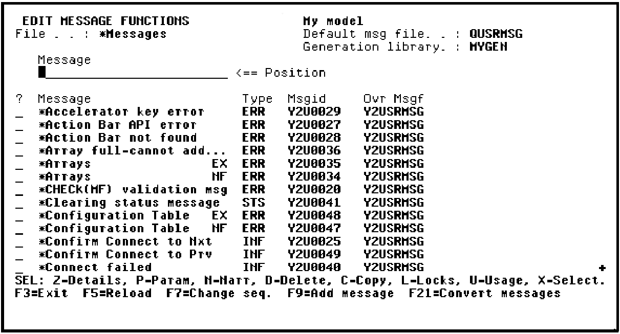 All message functions attached to the *Messages file are displayed. You will now create a new message function to be executed if Sire Date of birth is greater than or equal to Date of birth as you did for the first message function.