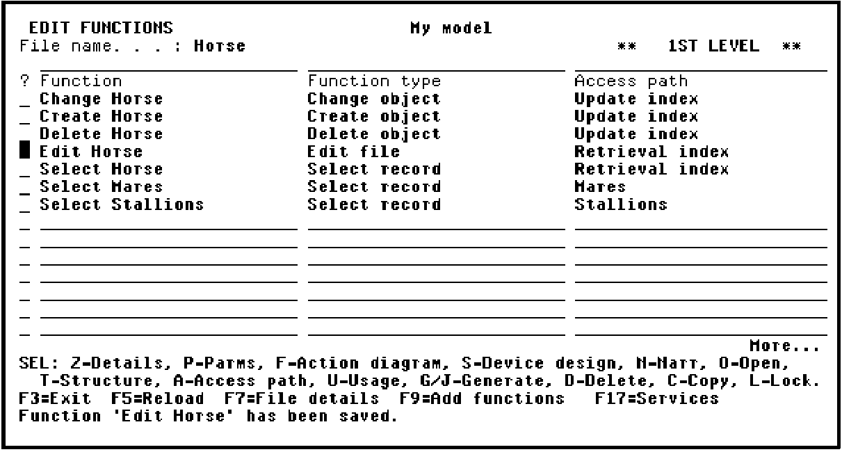Press F13 (Fast exit) to Exit the Action Diagram Editor and display the Exit Function Definition panel. Accept the defaults on this panel to save all changes you made to the action diagram.