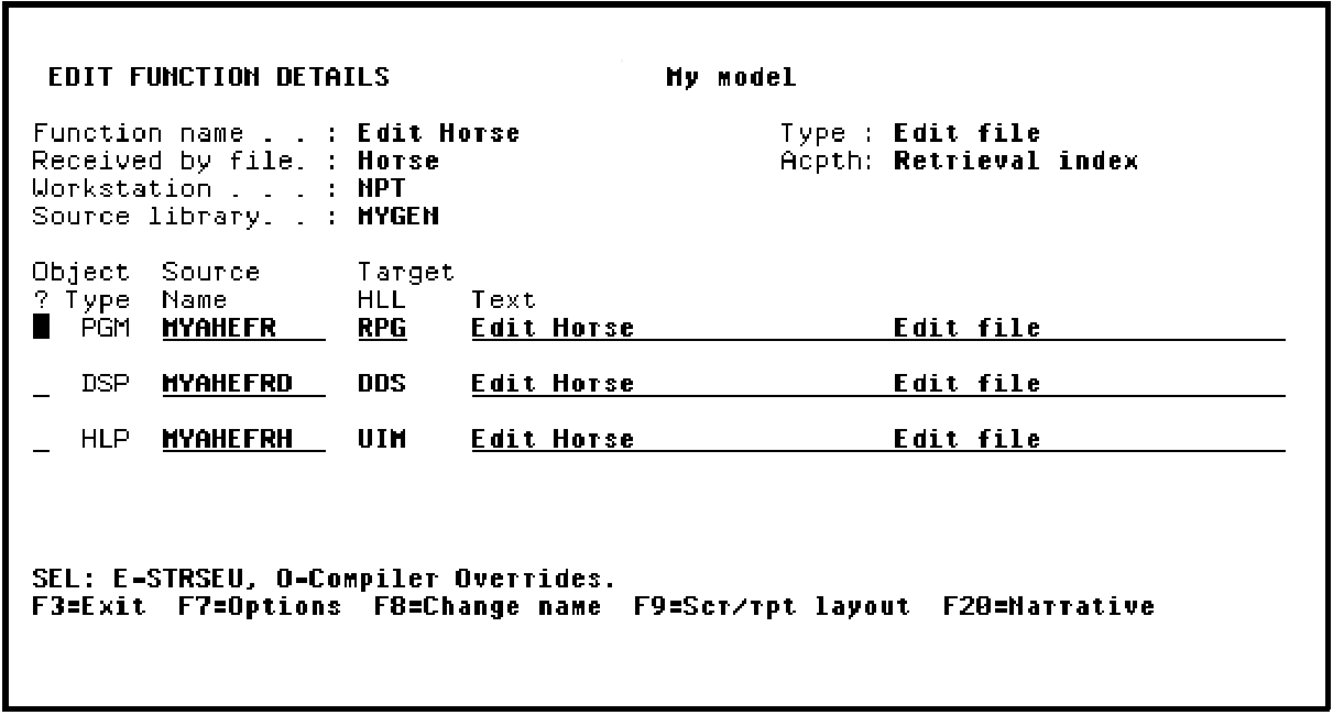 From the Edit Functions panel, type Z against the Edit Horse function.