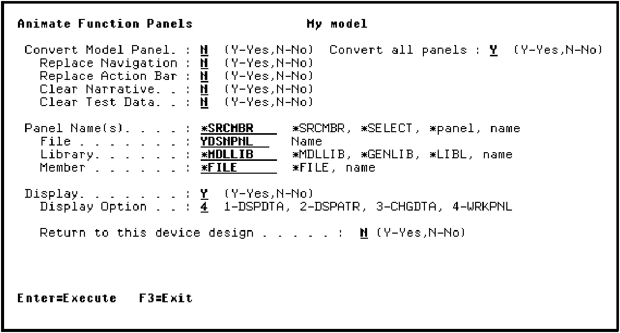 Type N for Convert Model Panel and change the Display Option to 4 (WRKPNL) to work with the Toolkit panel design.