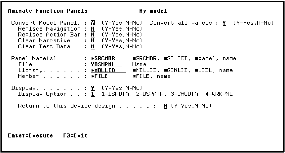 Press F2 to display the Animate Function Panels panel. Since you have already converted the CA 2E device design to a Toolkit panel design you can either accept the defaults or type N for the Convert Model panel field. Typing N can save time. In this case accept the defaults.