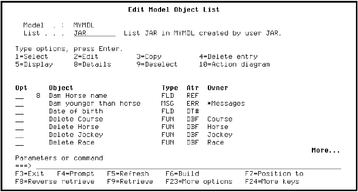 You can update the model object list entry to reflect the current information for the actual model object. To do so, type 33 for the Subfile selector for Dam Horse name.