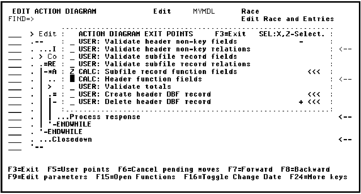 Press F5 to view the action diagram for the Edit Race and Entries function.