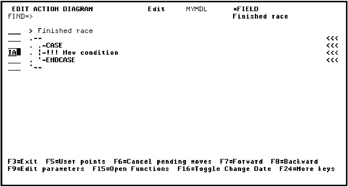 Insert an action into the action diagram. Type IA.