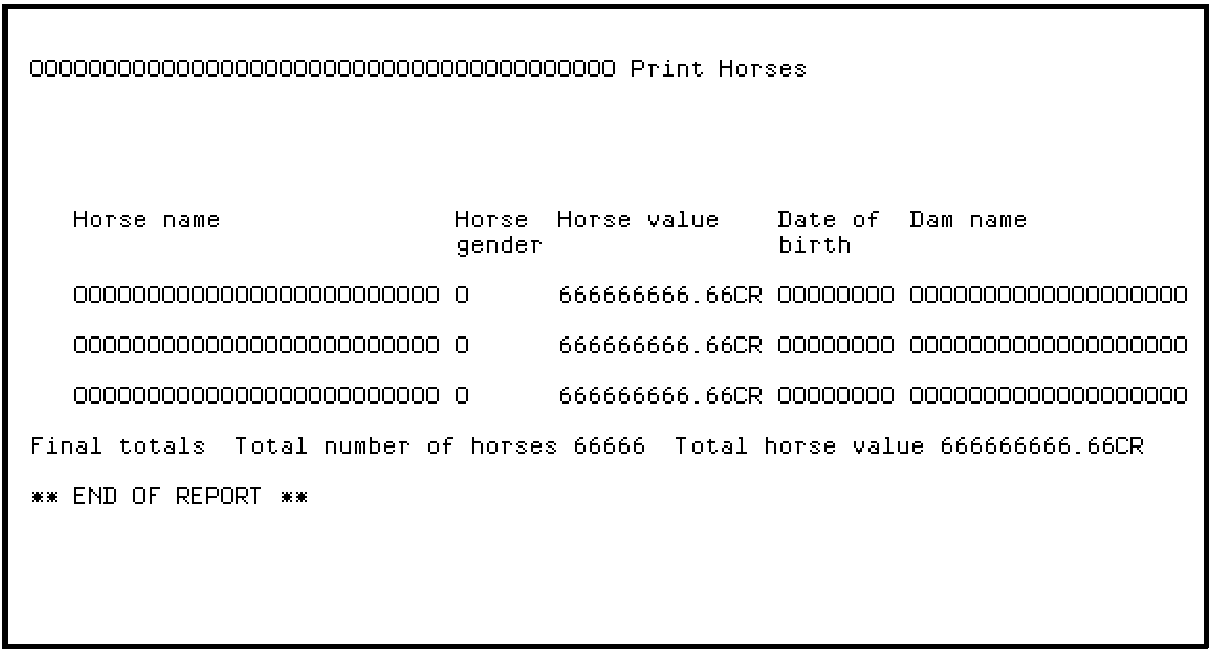 The report device design should now look like the one shown below. Since you have hidden some fields on the Detail format, the design no longer exceeds the 132 character size limit.