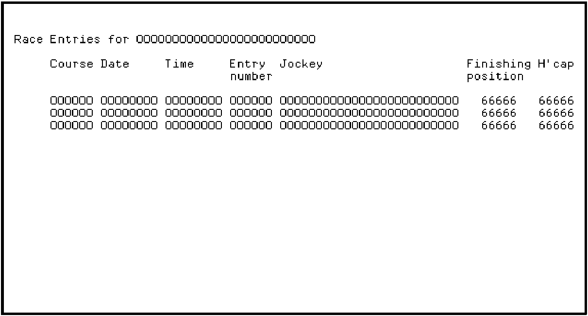 The default layout is obtained in a similar way to the previous Print File function. The access path has a non-unique key. A heading and total format are provided for each key of the access path. All the fields from the access path format are output on the detail line records, except for the key fields, which are hidden.