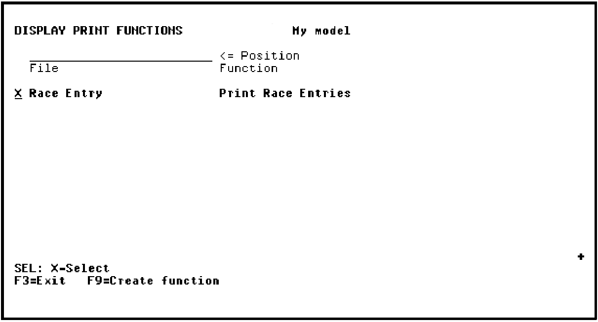 The Edit Device Structure panel represents the layout of the report in terms of the formats from which it is constructed. This display is only available for functions of type PRTFIL or PRTOBJ. It has facilities for embedding PRTOBJ functions within the report and moving and copying them.