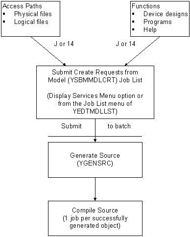 You can generate source for a CA 2E access path or function interactively or in batch (see the Performance Considerations section in this chapter). The CA 2E generators: