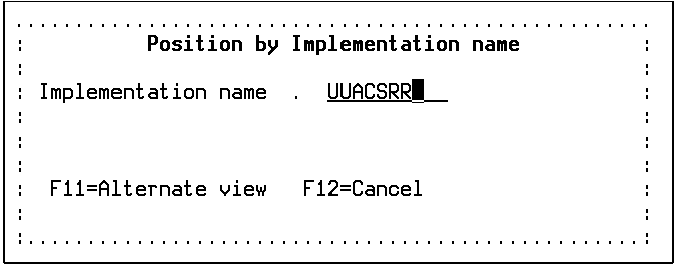 To position the model object list to the model object whose Implementation name is UUACSRR, press F11 until the ‘Position by Implementation name’ window displays, type UUACSRR.
