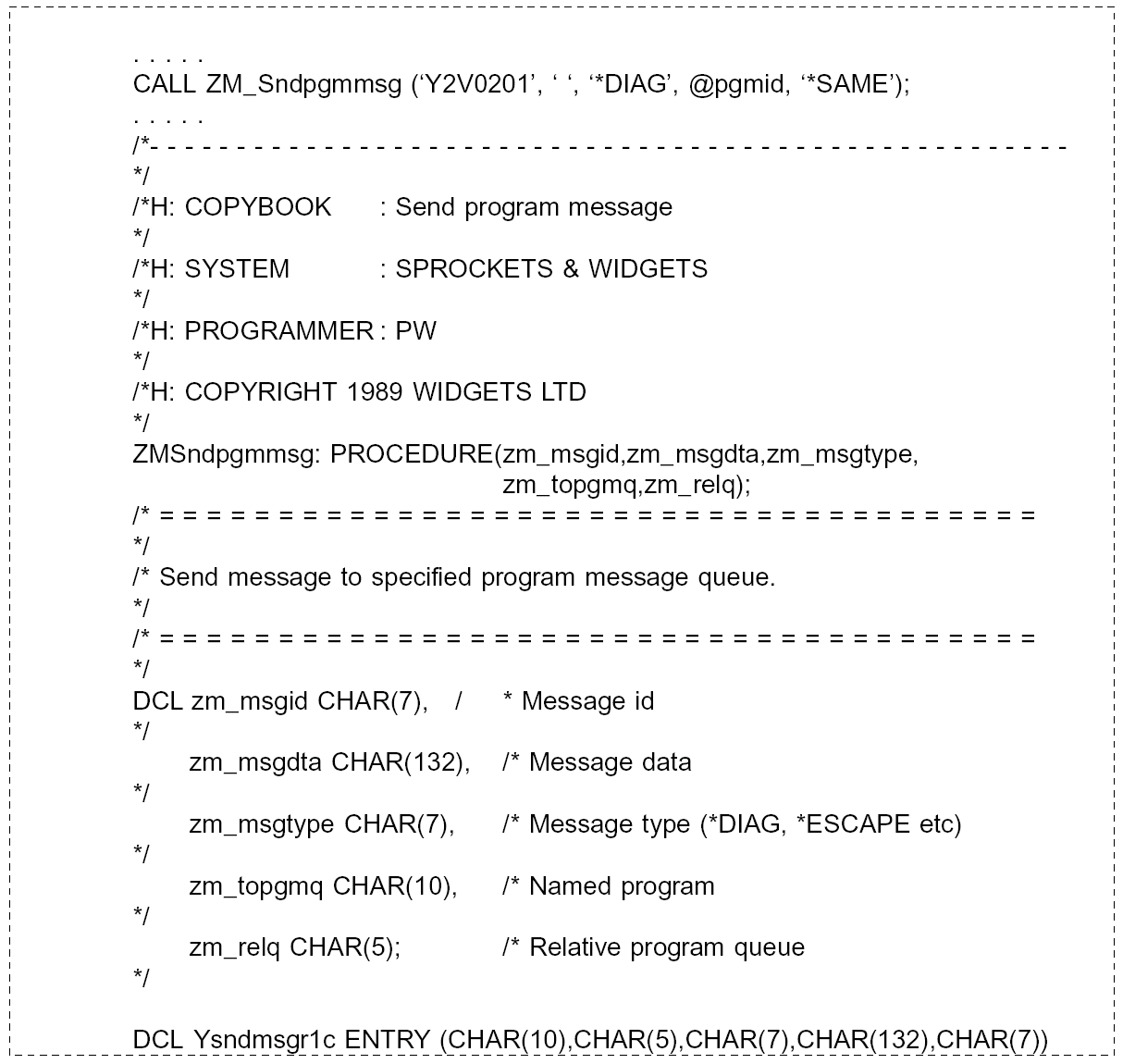 Coding Standards for Database Files › PL/1 Coding Structures and Program Logic › Standard Procedures › Message Sending Procedure