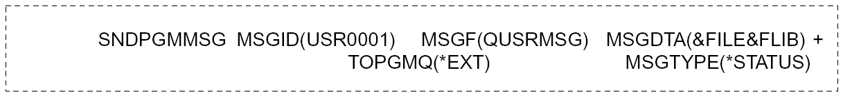 Long running jobs should send status messages to report the job’s progress. For instance, ‘Records being copied to file QTXTSRC’, ‘Work space is being loaded’, ‘Entire system is being backed up’. This can be done as follows: