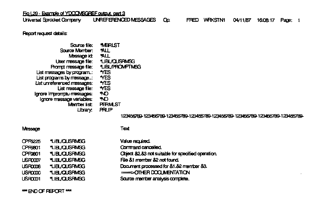 Examples of the output of the YDOCMSGREF command are shown in the following four illustrations.