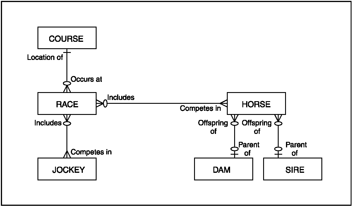 The relationships present in the CA 2E data model at this point can be represented as shown.