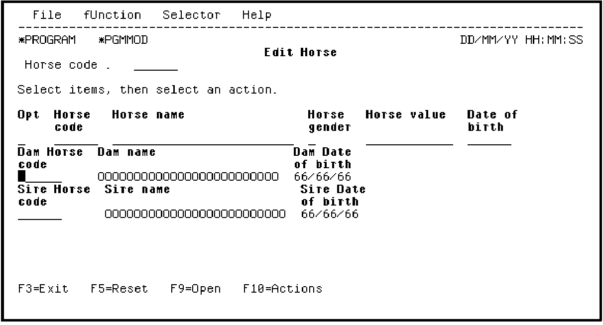 You can view a list of all the fields available on any particular format using the Edit Screen Format Details panel. To access this panel for the Subfile record format, place the cursor on any field of the first subfile record.