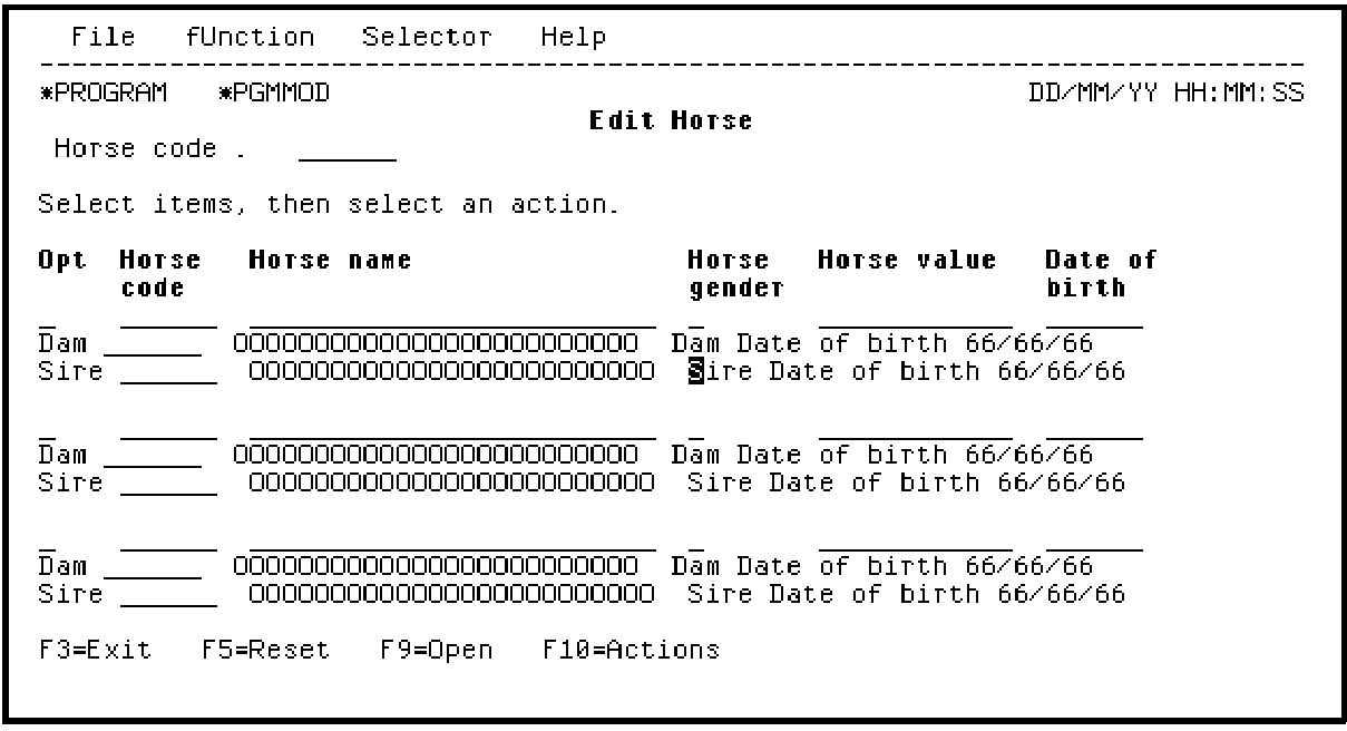 Notice the value of B (Before) in the Label location field; this caused the LHS text to appear as a label before the Sire name field. To remove the label, change the Label location field from B to blank.