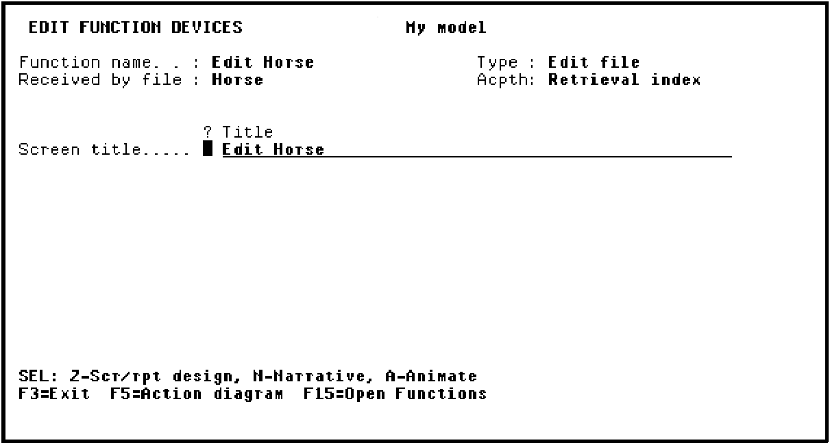 From the Edit Function Devices panel you can change the panel title, display the action diagram for the function, display all open functions (CA 2E allows you to have multiple functions open), return to the device design, or exit and save the device design.