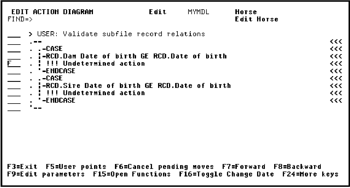 Type F against the first !!! Undetermined action as shown.