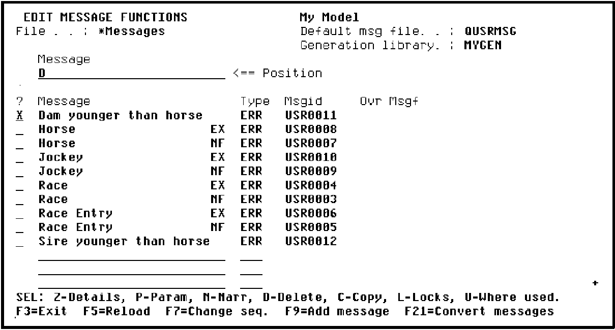 Type X against the message, Dam younger than horse, as shown to select it as the action in the action diagram.