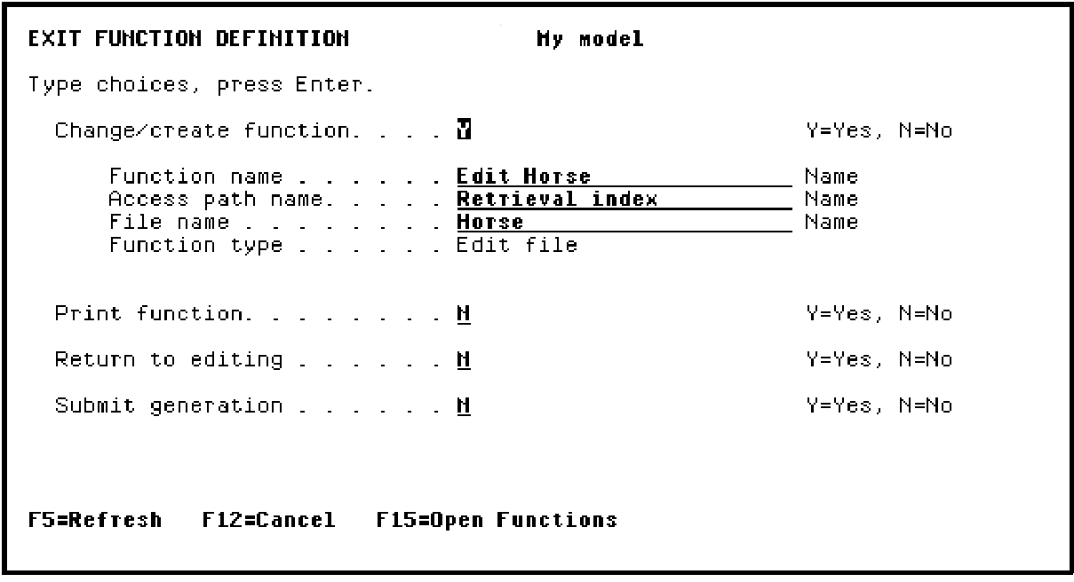 Press F13 (Fast exit) to Exit the Action Diagram Editor and display the Exit Function Definition panel. Accept the defaults on this panel to save all changes you made to the action diagram.
