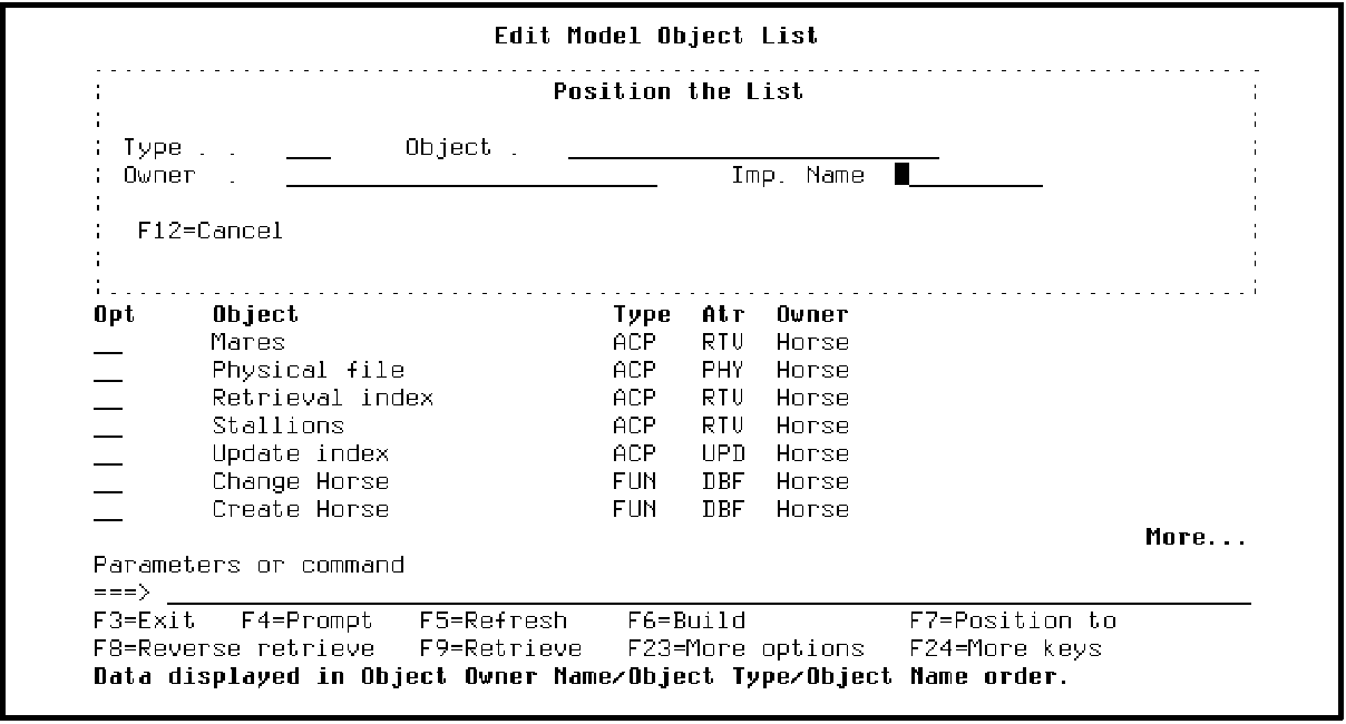 Press Enter. The list will be repositioned to the top of the list in order by object name and type.