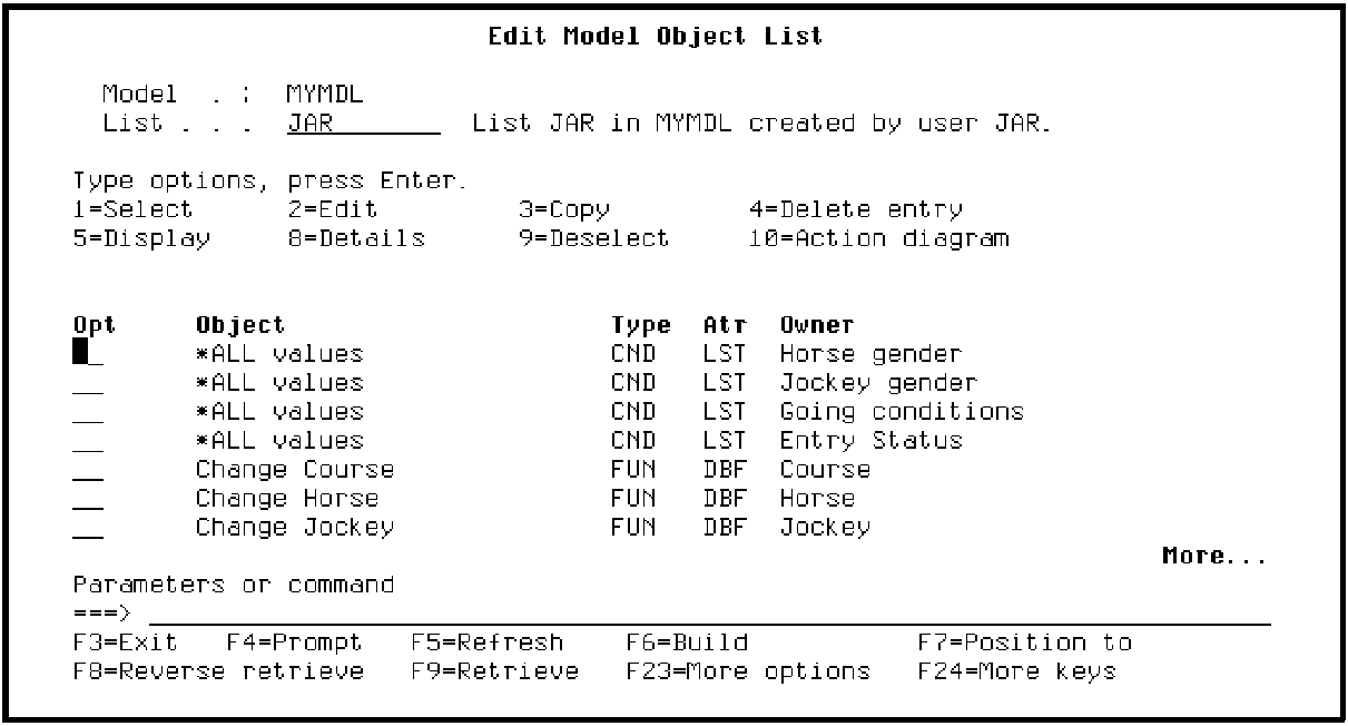 Press Enter to display the Edit Model Object List panel for your session list.
