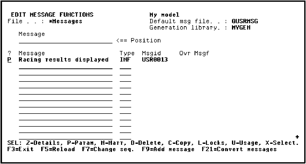 Next specify a parameter for the message function in order to include the name of the horse in the message. Type P as shown in the Subfile selector.