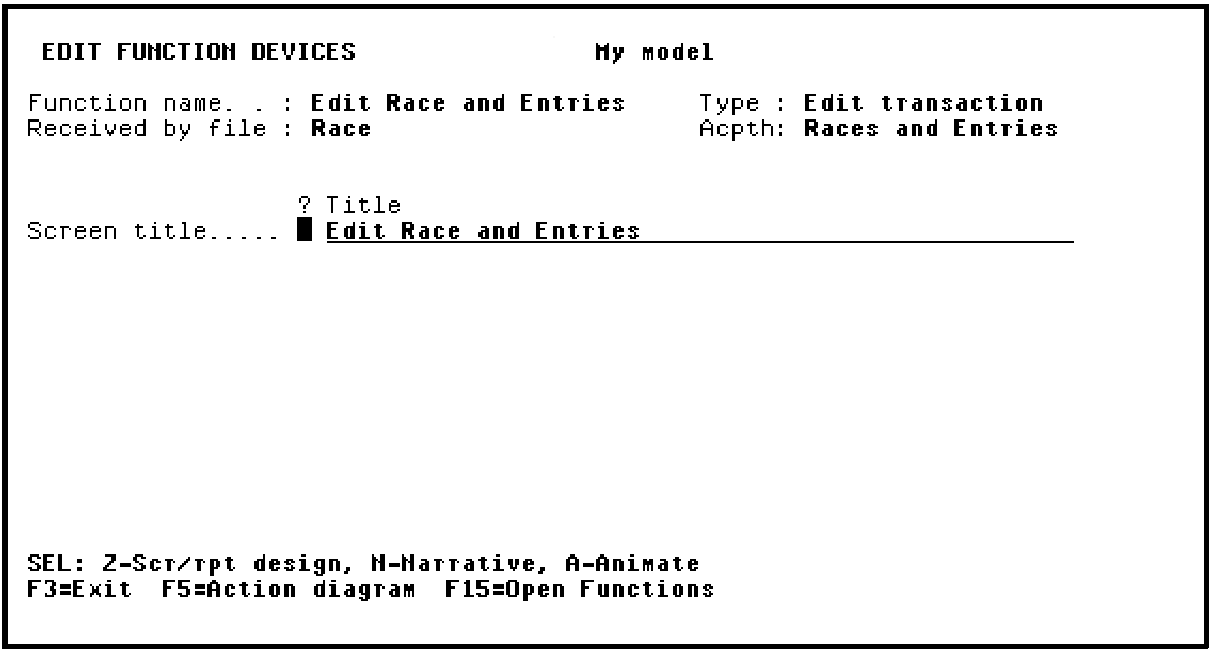 Press F5 to view the action diagram for the Edit Race and Entries function.
