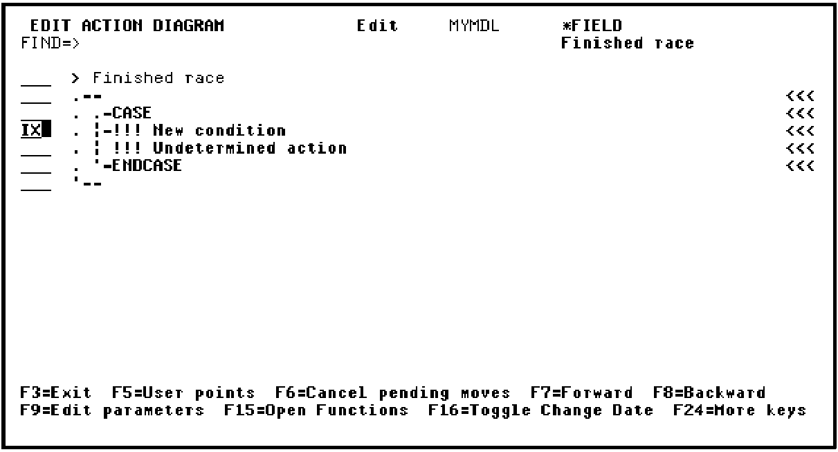 Add another condition to the CASE construct by typing IX against the first !!! New condition as shown. Recall that IX inserts a new condition within a CASE construct.
