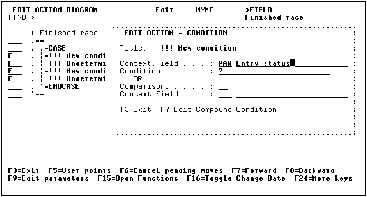 Type the details as shown. Type PAR (parameter) for the context, Entry Status for the Field, and ? in the condition field to view a list of the available conditions.