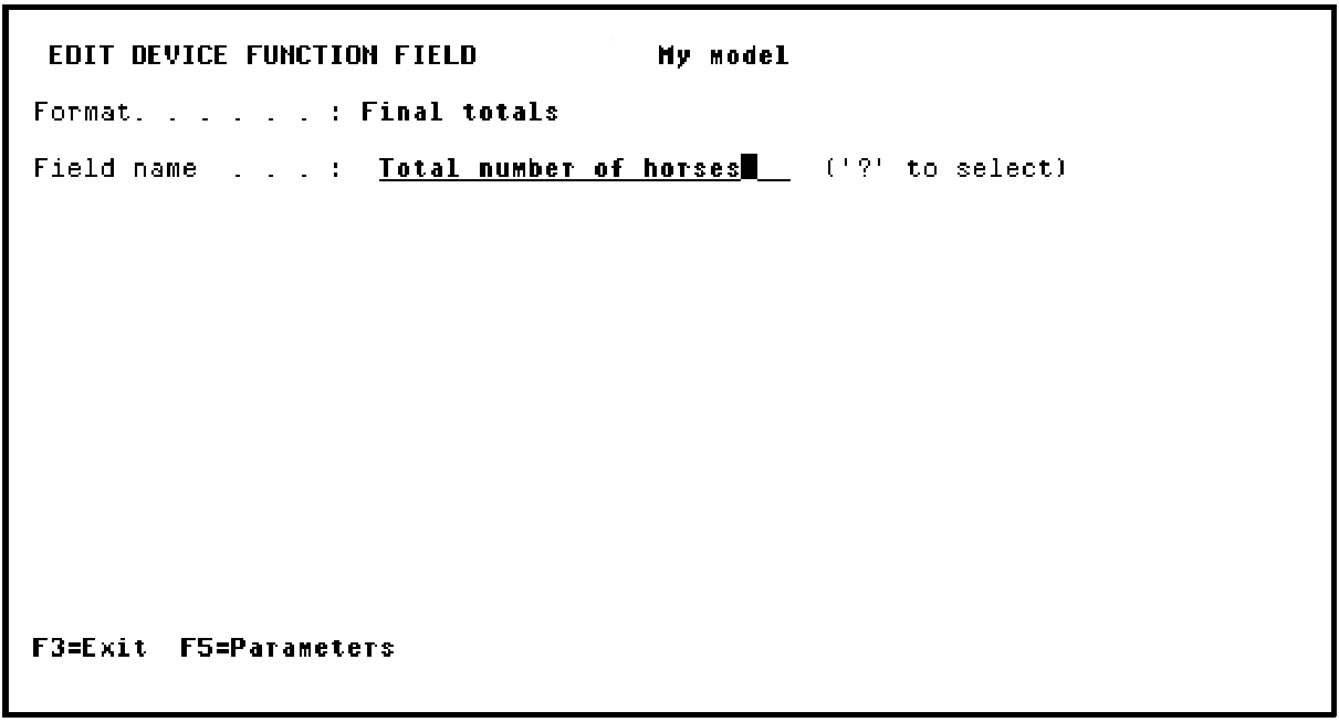 The Total horse value function field is now present on the Final totals format. To add the other function field, position the cursor on the Final totals format.