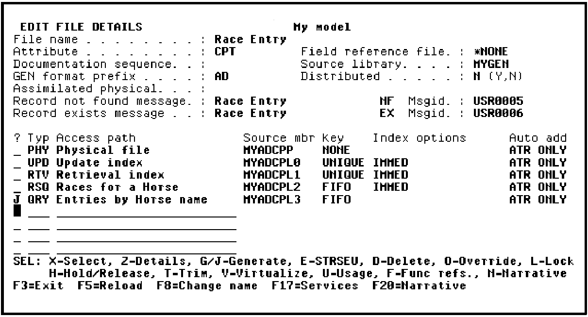 The access path you have just defined must be generated and compiled before running the application. You have the option to add it to the job list now. To do so, type J next to the QRY access path.