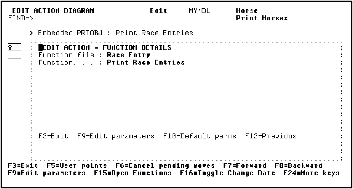 To edit the function parameters, press F9. The Edit Function Parameters panel lets you edit parameters for the Print Race Entries function.