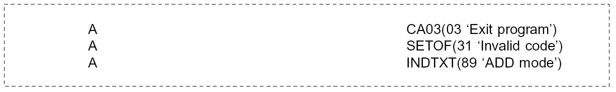 Use the DDS INDTXT keyword to document special indicators. You should also specify text for each command key and each DDS SETOF statement.