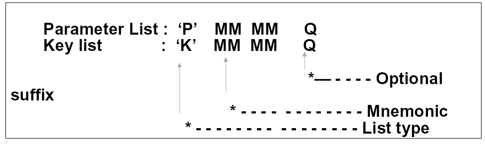 The following naming convention should be used for key lists and parameter lists: