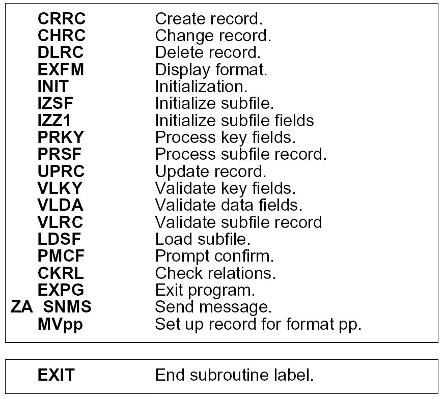 - Subroutine mnemonic—MMMM is a mnemonic describing the subroutine. The following are reserved standard subroutine mnemonics: