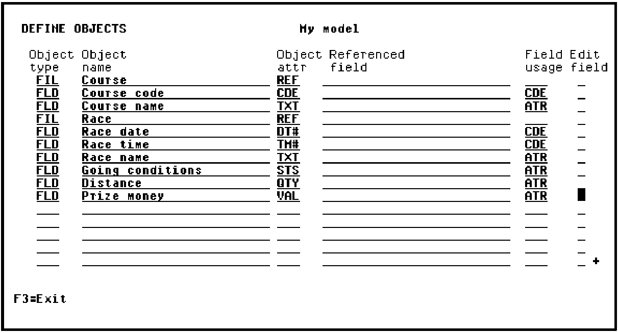 If all the object attributes you specified were valid,CA 2E automatically exits the Define Objects panel and returns to the Edit Database Relations panel.