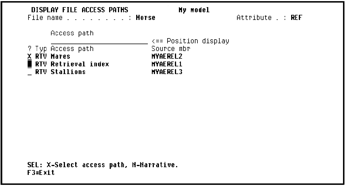 Select the access path that is to be used in place of the default referenced access path. In this case, select the Mares access path by typing X against Mares.