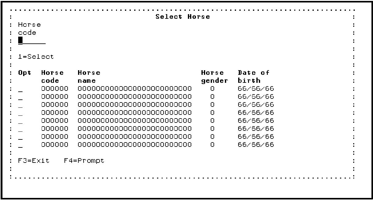 Complete the following exercise to modify the device design for the Select Horse function. Use function keys as you did for the Edit Horse function previously in this tutorial.