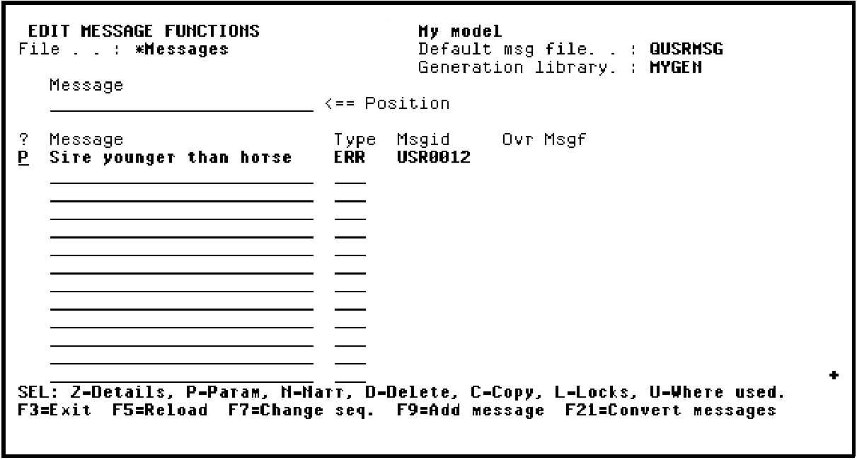 Press Enter to confirm. Press F3 to return to the Edit Message Functions panel.