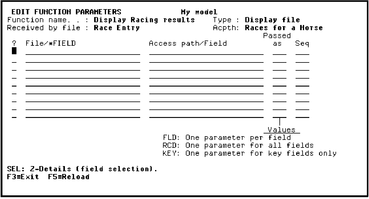 Press Enter to display the Edit Function Parameters panel.