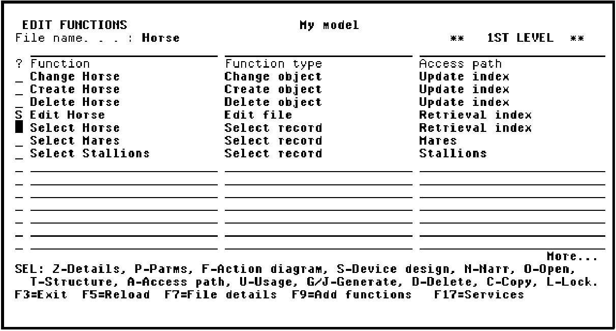 Type S against the Edit Horse function as shown to access the Device Design Editor.