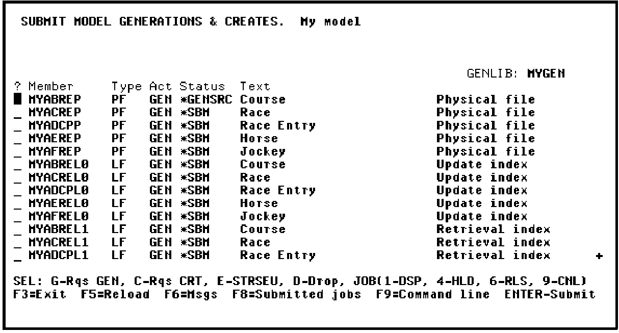 Once submitted, each item in the list is initially shown with a status of *SBM. As each item in the list is processed, the status in the list is updated as follows.