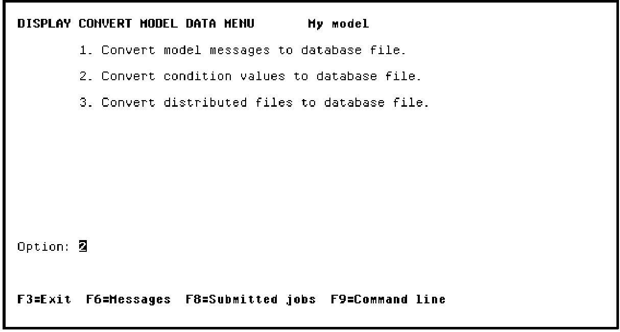 You can run the YCVTCNDVAL command to convert the condition values to a database file using the Convert model data menu, which is an option on the Display Services Menu.