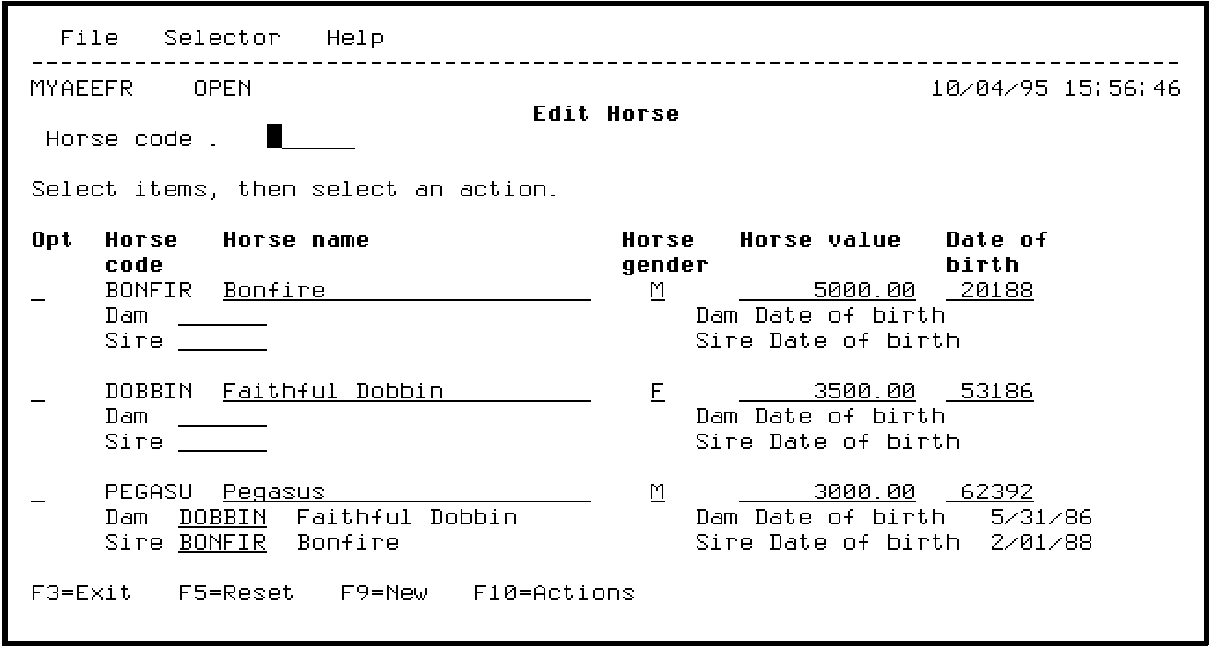 Generating, Compiling, and Executing › Executing and Testing Compiled Programs › Exiting the Edit Horse Program